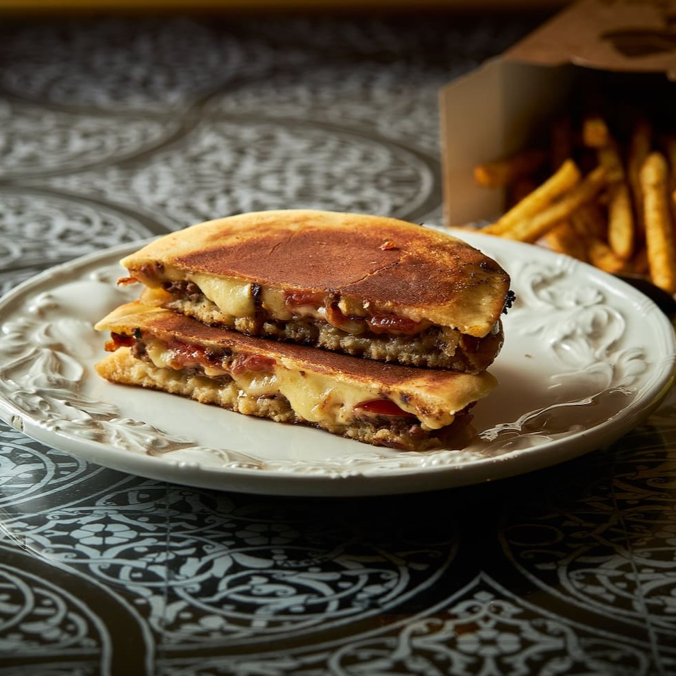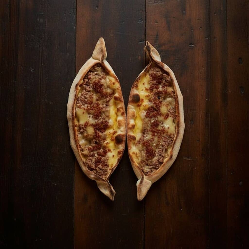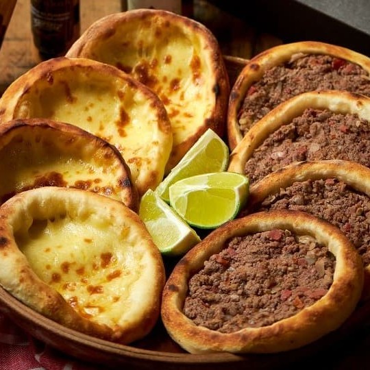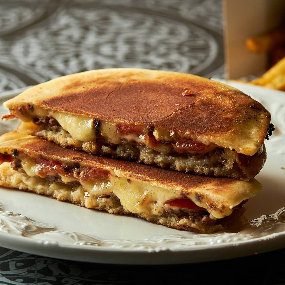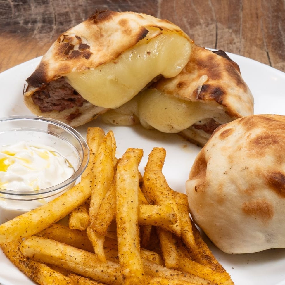 Pão caseiro recheado com kafta prensada, coberto com mozarela derretida e finalizado com nosso molho especial de tahine com coalhada. Grelhado na chapa, tem cerca de 12cm e 160g. Perfeito para comer com as mãos e saborear até a última mordida.