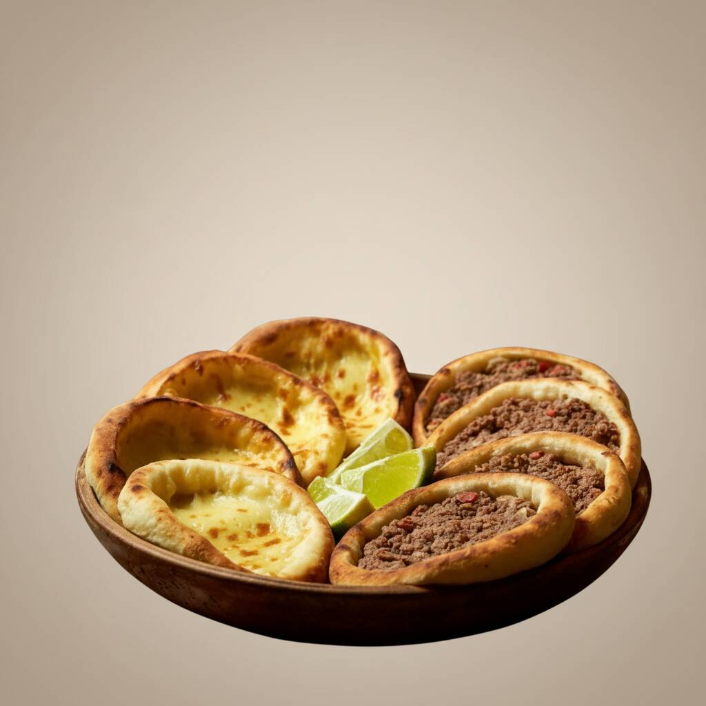 São 8 unidades com sabores variados: carne, carne com mozarela, só mozarela e zaatar. Preparadas com ingredientes frescos e bem servidas. Ideal para quem quer experimentar um pouco de tudo.