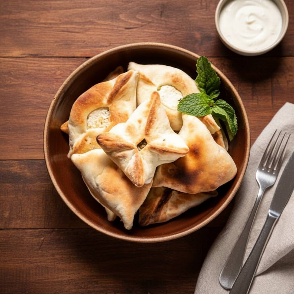 10 Mini esfihas fechadas, recheadas com ingredientes selecionados. Perfeito pra dividir ou matar a fome com muito sabor.