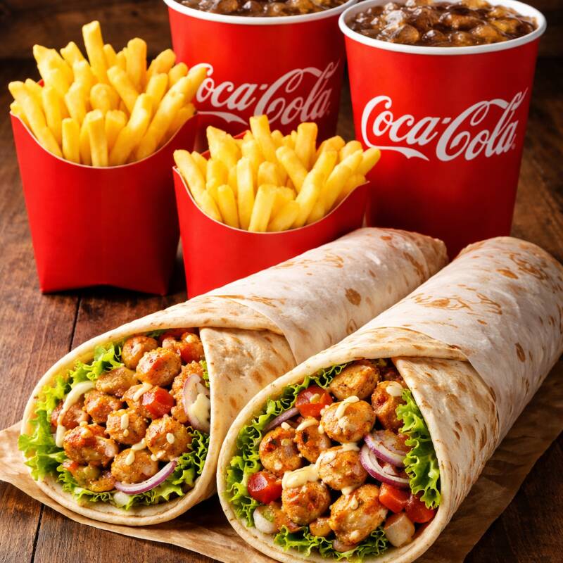 🥙 Shawarma de Carne com Fritas Delicioso shawarma de carne bovina grelhada, recheado com alface fresca, omelete, queijo cheddar derretido e batata frita crocante dentro do pão sírio. Servido com uma porção extra de batatas fritas douradas ao lado. Uma explosão de sabor e textura — simples, irresistível e com o toque especial do Barcha Food 🇹🇳🔥