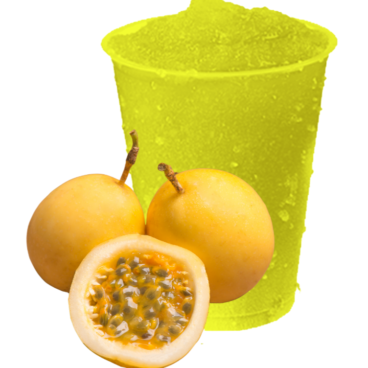 Vodka, leite condensado, maracujá e gelo de maracujá
