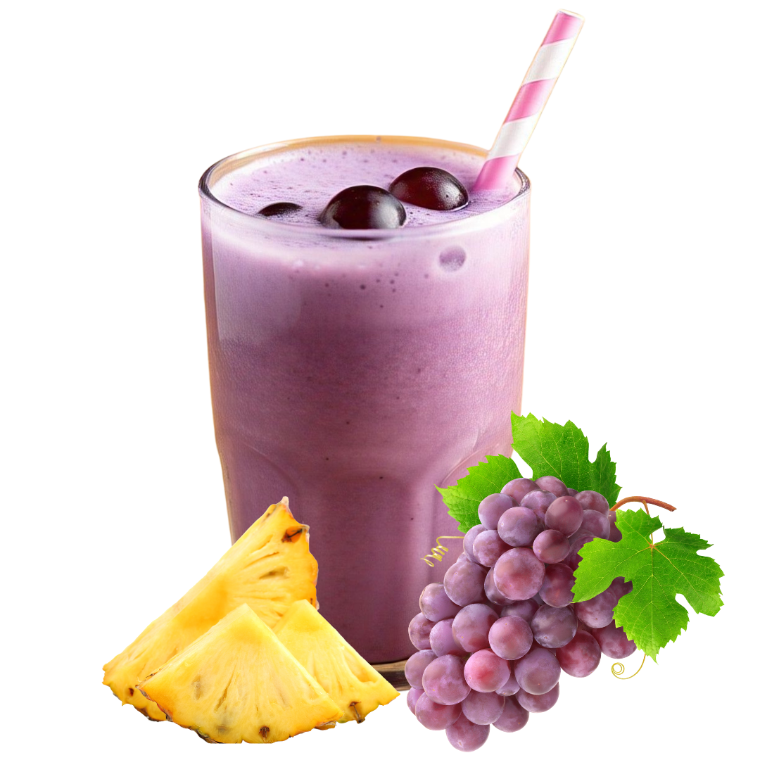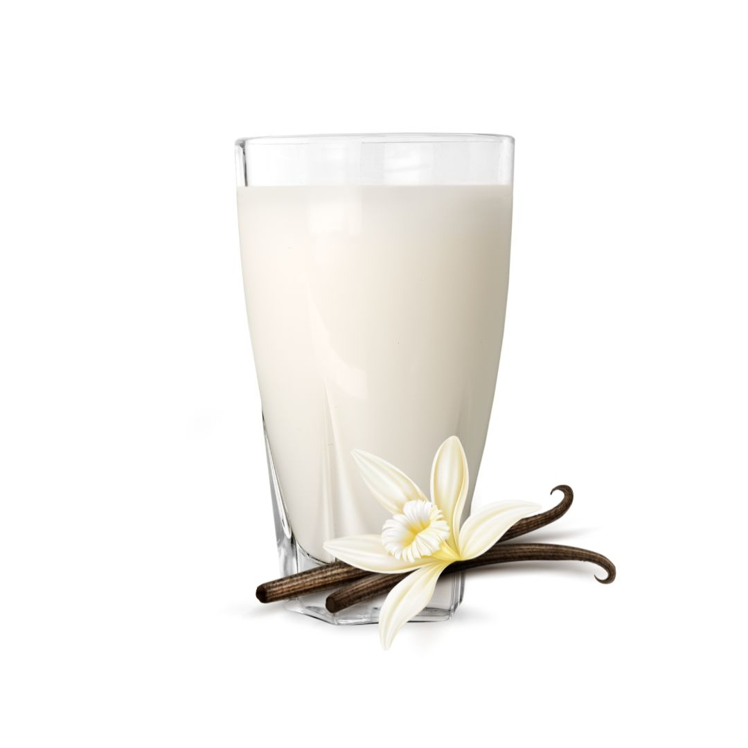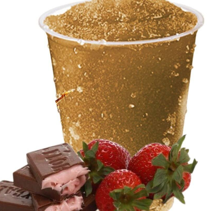 Vodka, leite, creme, essência de babaloo e gelo de morango