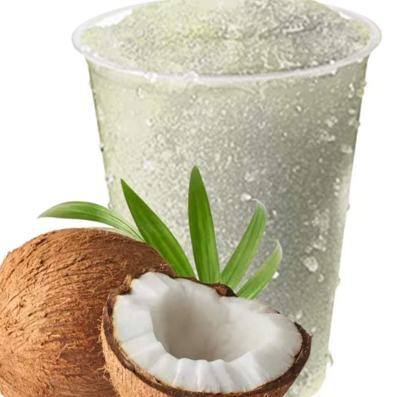Vodka, leite, creme, pedaços de coco e gelo de coco