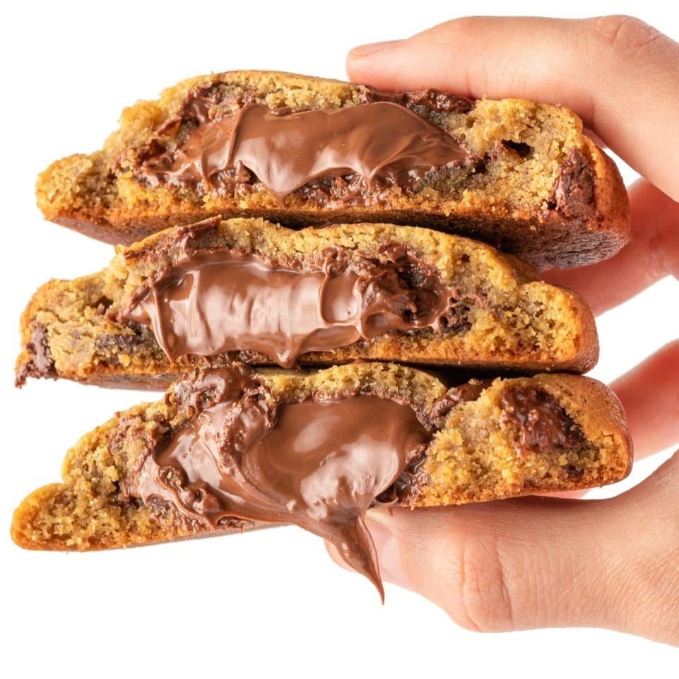 Apresentamos o pioneiro 'Cookie Nutella', o primeiro cookie de Nutella elaborado no Brasil! Com uma massa delicada de baunilha que derrete na boca, este cookie é generosamente salpicado com gotas de chocolate, adicionando uma dimensão de sabor irresistível. Seu diferencial está no coração do cookie: um recheio generoso de Nutella pura, que proporciona uma experiência de sabor inigualável.
