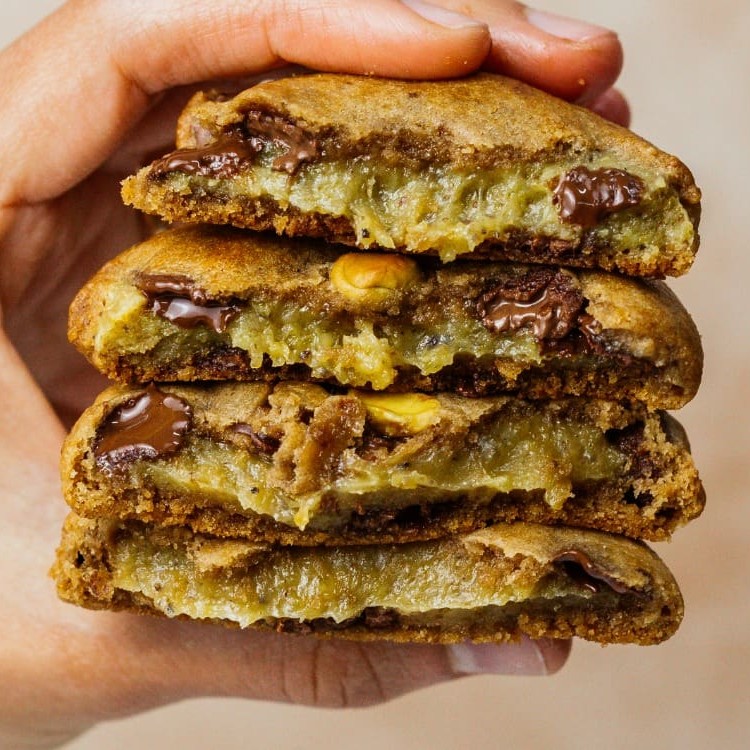 Desfrute do nosso Cookie Pistache. Este best-seller, rico em sabor, é preparado com uma suave baunilha, salpicado generosamente com gotinhas de chocolate nobre. Seu coração esconde um recheio luxuosamente cremoso de brigadeiro de pistache, conferindo um sabor exótico e refinado. Cada mordida é uma experiência indulgente que certamente deixará um desejo de quero mais. Ideal para acompanhar seu café