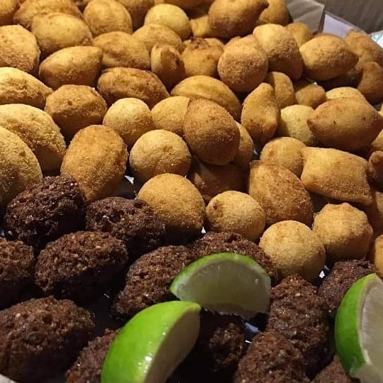 100 Salgados 30 Coxinhas 20 Bolinhos de queijo 20 Bolinhos de calabresa 20 Risoles 10 Quibes