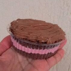 Massa de chocolate, com recheio de brigadeiro e cobertura de chocolate.