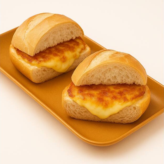 Pão Francês com uma maravilhosa crosta de queijo derretido, aprox. 100g de queijo.