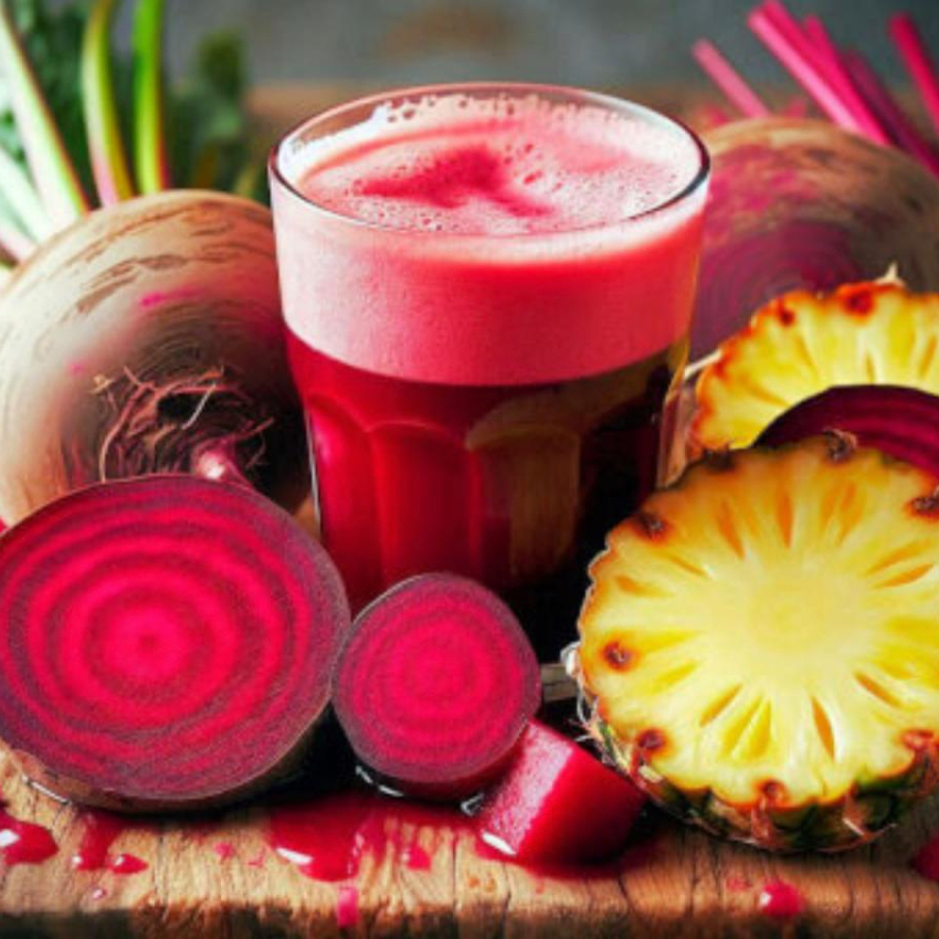 (ABACAXI, MORANGO, BETERRABA, E SUCO DE LARANJA).