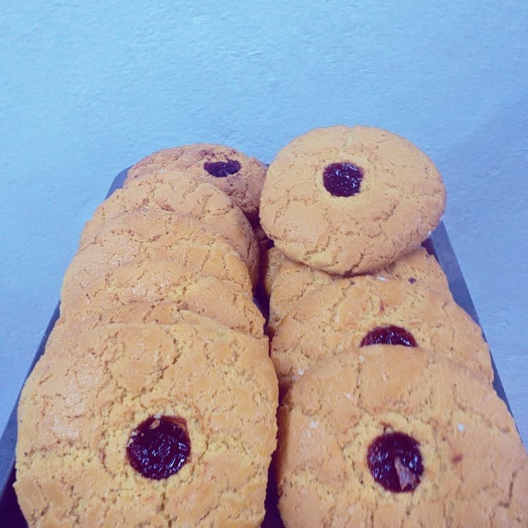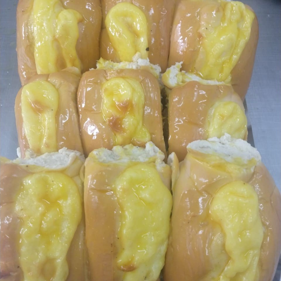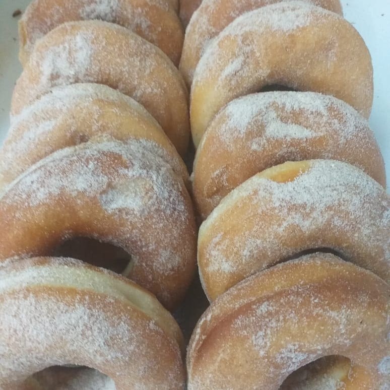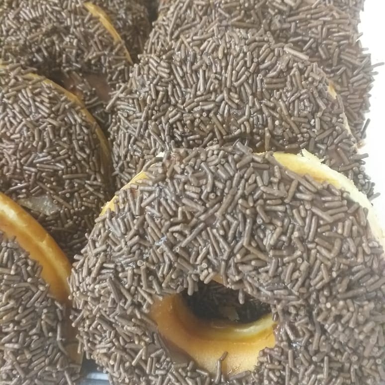 Massa semi doce,coberta com doce de leite e granulado de chocolate