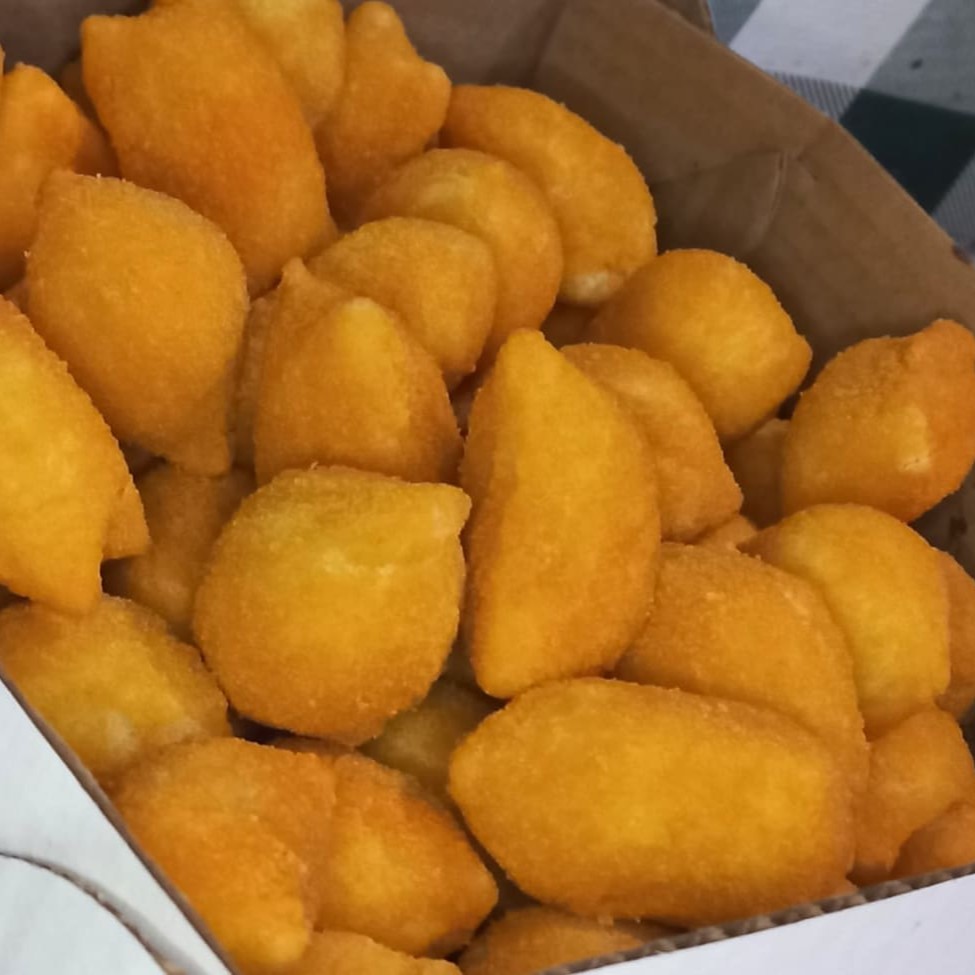 São 100 Mini salgados no tamanho de 10gr cada Contendo os sabores Coxinha, Calabresa, Bolinho de Queijo, KIbe e Risoles de Presunto e Queijo