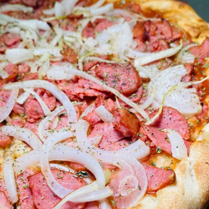 Feita com calabresa moída, cebola, ovo, pimenta e mussarela.