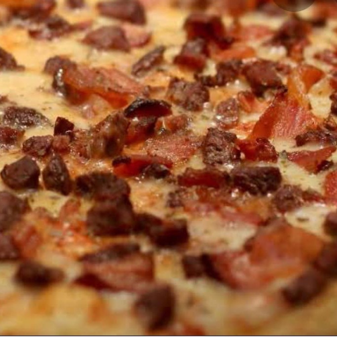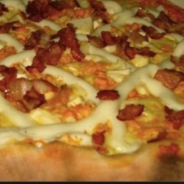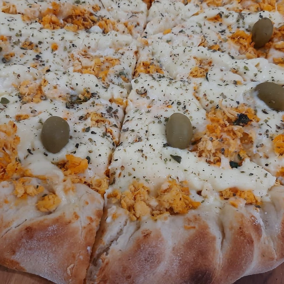 Deliciosa Pizza feita com nossa massa Artesanal, aberta na hora e recheio de Frango desfiado, temperadinho com especiarias frescas, Cream Cheese e Bacon Fatiado. A perfeição de Pizza!Sugerimos acrescentar Borda Recheada, sua Pizza ficará ainda mais Gostosa! **Serve bem até 4 pessoas.