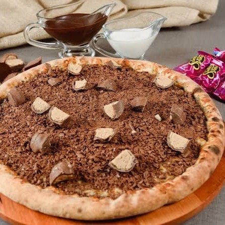 Vocês pediram e ela Voltou!!!!! Pizza de Ferrero Rocher, a Melhor Pizza Doce da Casa! Sugerimos acrescentar Borda Recheada de Chocolate para deixar sua Pizza Doce ainda mais Gostosa Pizza Grande 8 Pedaços - Serve bem 4 Pessoas