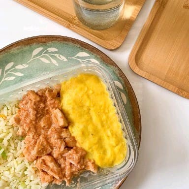 Frango Em Cubos, Creme De Milho, Arroz Com Cenoura