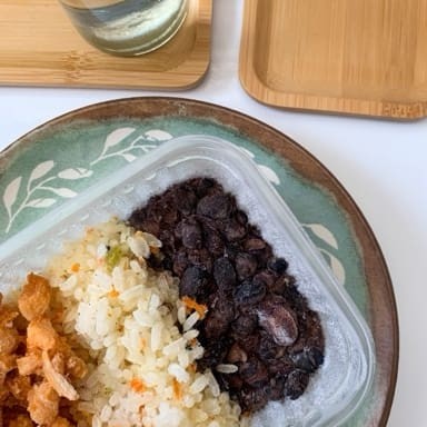 Frango Em Cubos, Arroz Com Cenoura E Feijão Preto