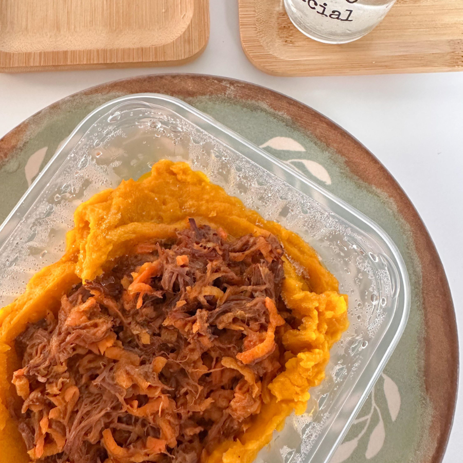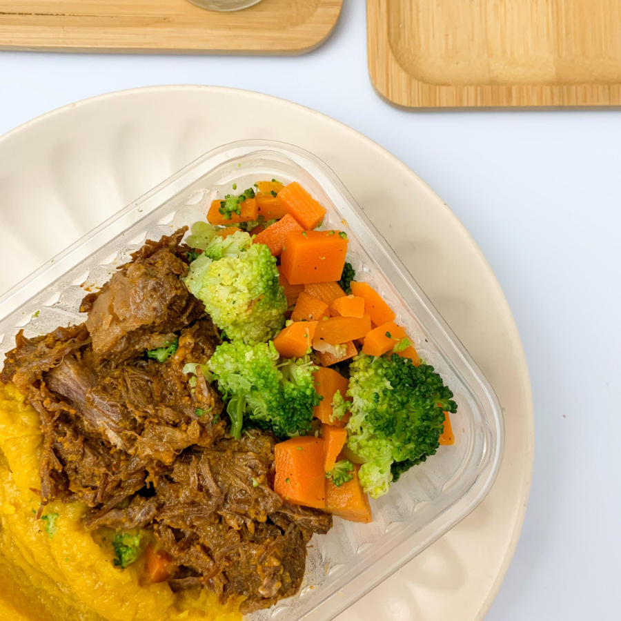 Ragu De Carne Com Cenoura, Purê De Mandioquinha E Legumes