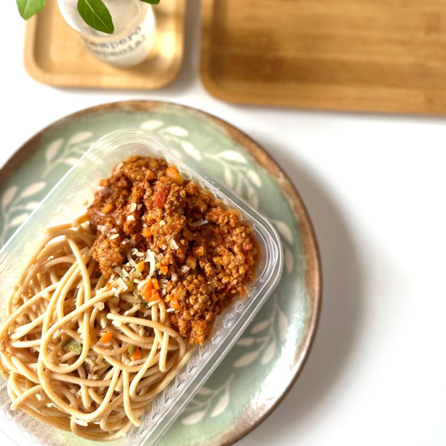 Deliciosa bolonhesa de carne moída com molho de tomate caseiro e espaguete integral