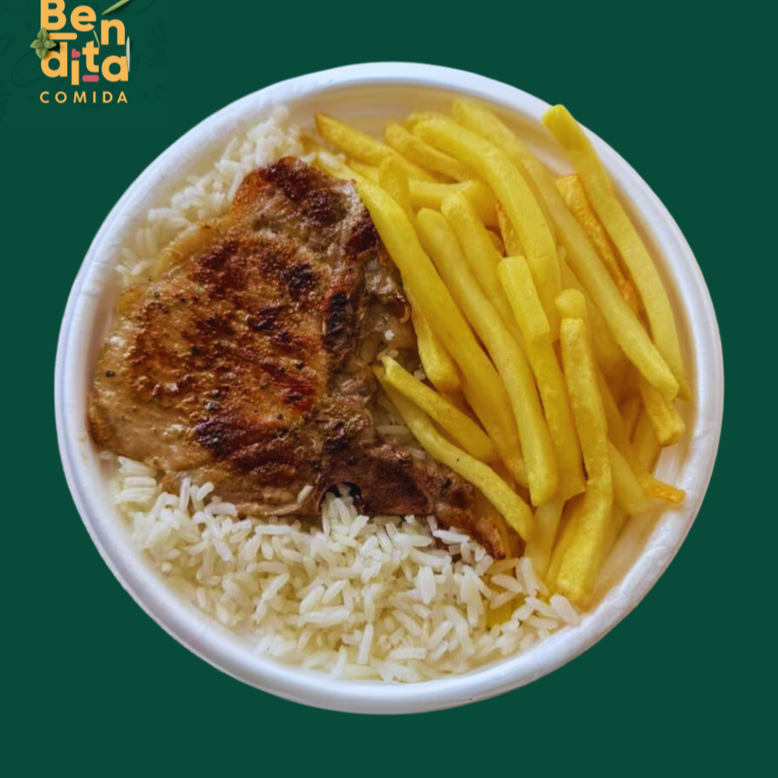 Marmita com deliciosa bisteca suína preparada com arroz branco, feijão e batatas fritas. Marmita indicada para 01 pessoa.