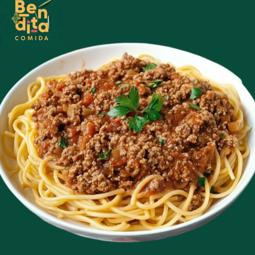 Aprecie o espaguete al dente, envolvido em um molho de tomate delicioso e recheado com carne moída. Uma refeição simples e irresistível, cheia de sabor e carinho!