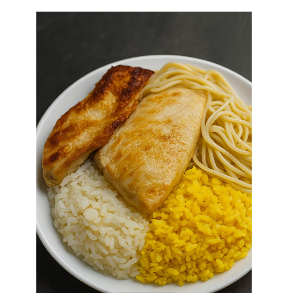 File de Frango Grelhado: Acompanhado de Arroz, feijão, Macarrão, Farofa caseira. (aprox. 750ml )