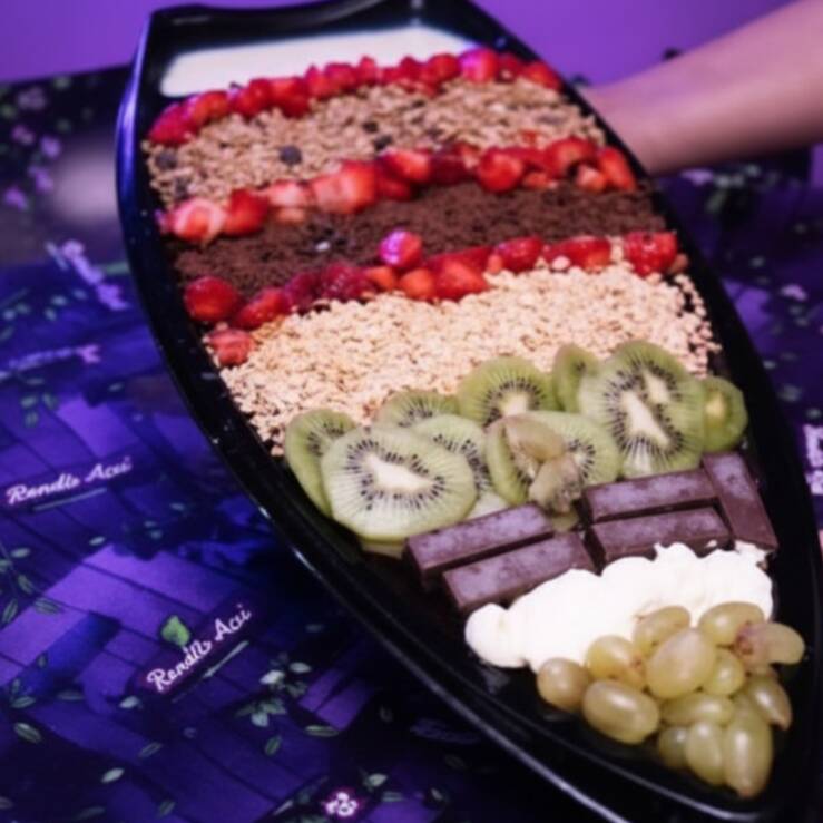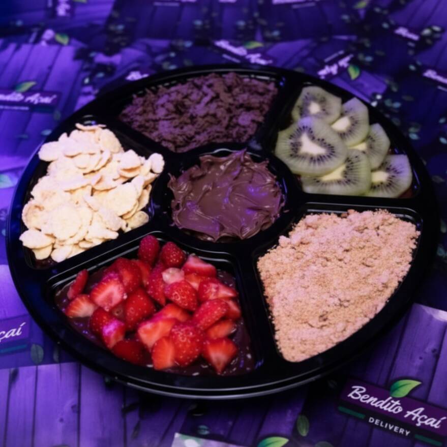 Super Barca de Açaí cremoso serve até 5 pessoas. Escolha no mínimo 02 frutas, 02 coberturas e 04 acompanhamentos e faça a sua combinação favorita!