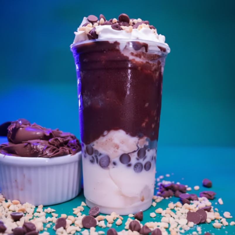 Cupuaçu, Nutella, gotas de chocolate, amendoim e chantilly