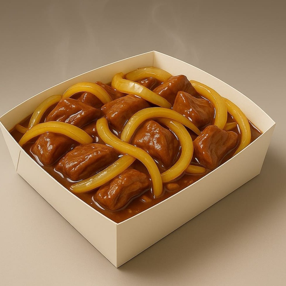 Suculentos pedaços de carne bovina refogados com fatias de cebola, envolvidos em molho encorpado e finalizados com um toque especial da Bá. Disponível nas opções: somente a proteína ou acompanhado de Yakimeshi (arroz especial com ovos, presunto, cenoura e cebolinha).