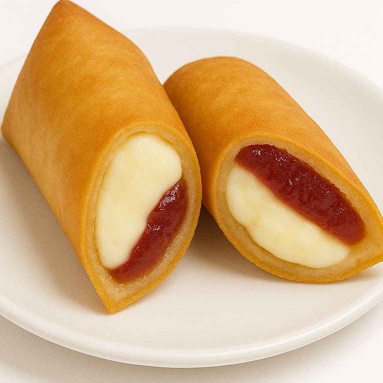 Rolinho crocante com recheio cremoso de queijo e goiabada, criando o contraste clássico entre doce e salgado. Crocante por fora e macio por dentro, esse rolinho é a versão oriental de uma das sobremesas mais amadas do Brasil.