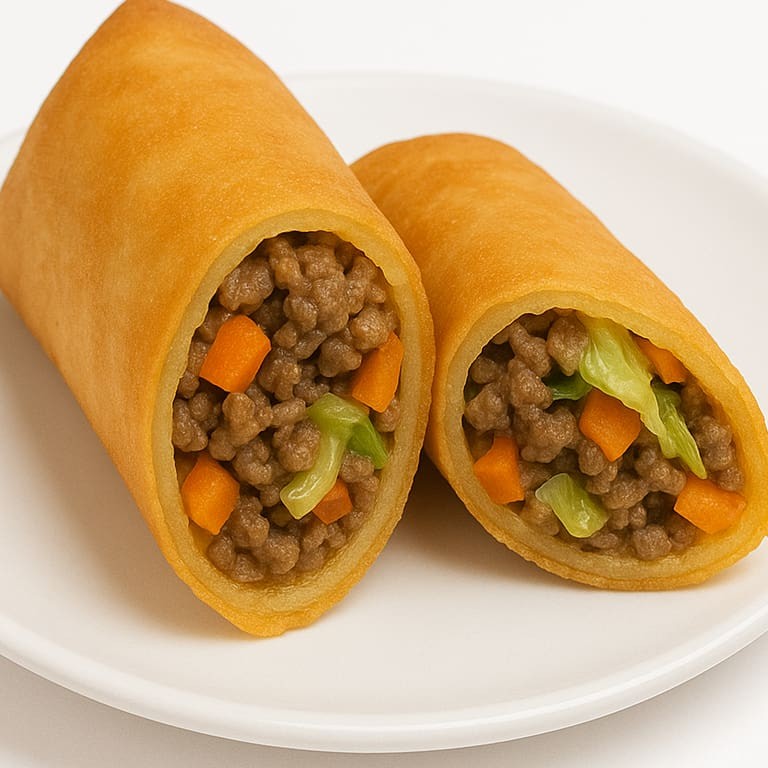 Rolinho crocante recheado com carne bovina e mix de legumes (tamanho aprox.: 12 cm)