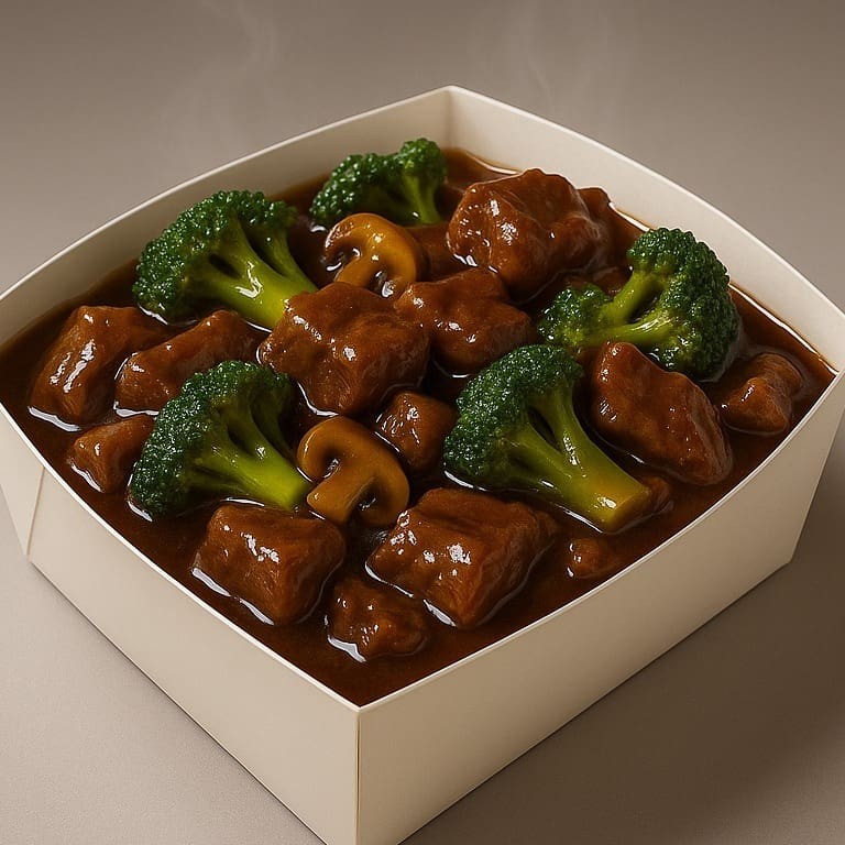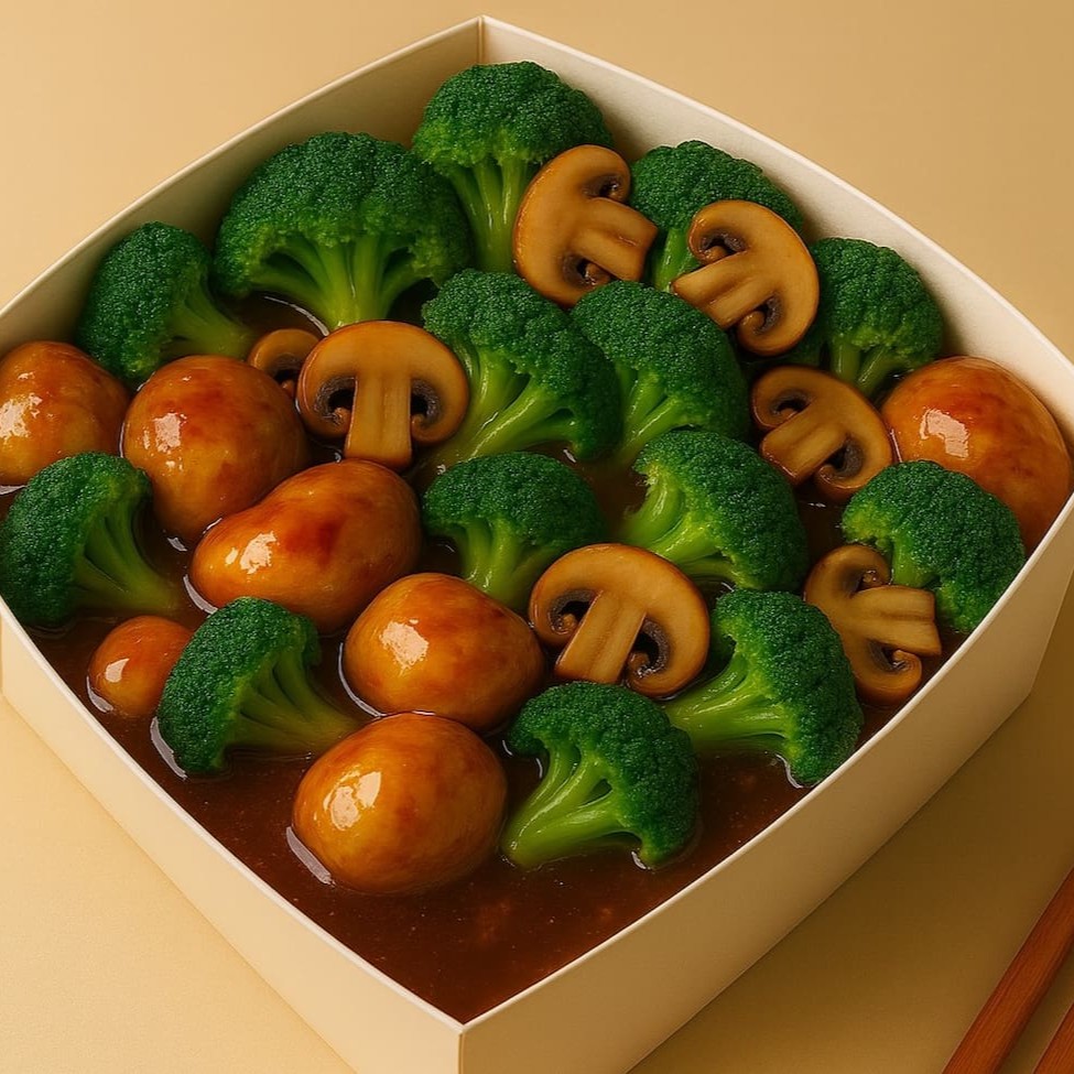 Suculentos pedaços de carne bovina salteados com brócolis frescos e champignon, envolvidos em um molho oriental encorpado. Disponível nas opções: somente a proteína ou acompanhado de Yakimeshi (arroz especial com ovos, presunto, cenoura e cebolinha).