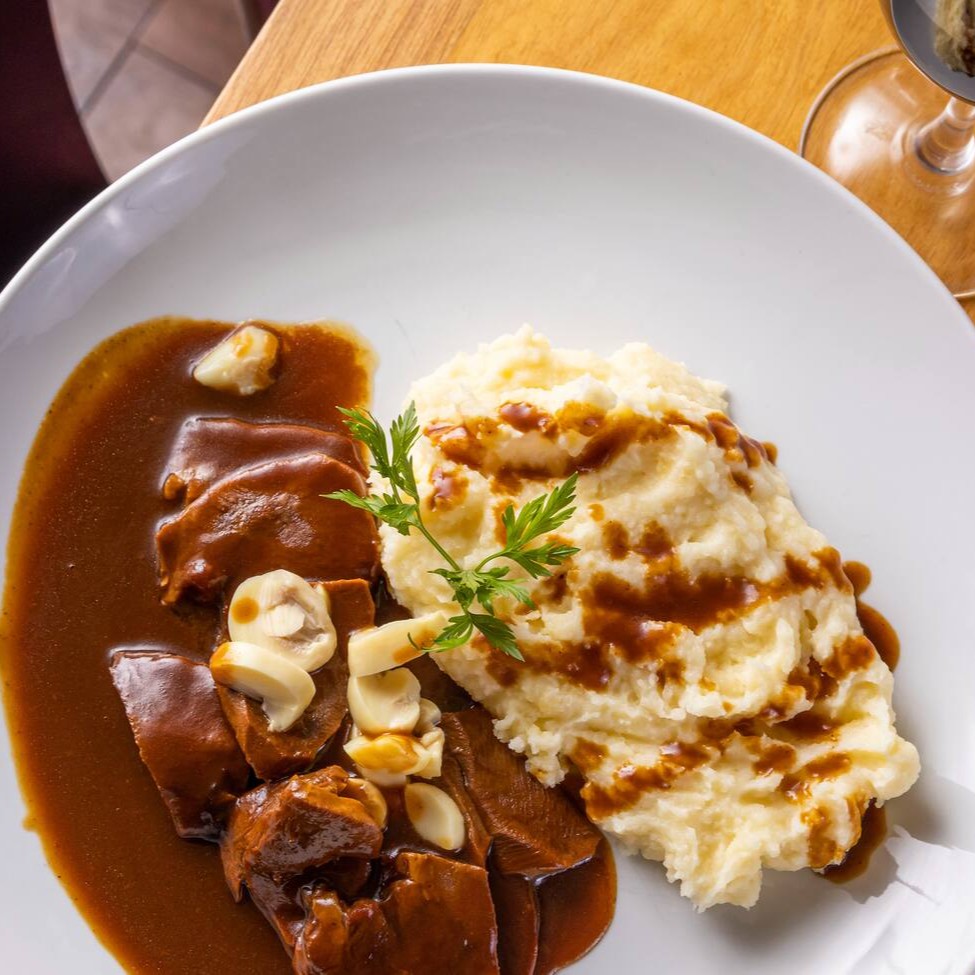 Língua Ao Molho Madeira Com Champignons E Purê De Batata
