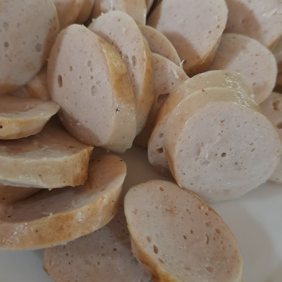 Uma unidade de salsichão sem corante fatiado aperitivo