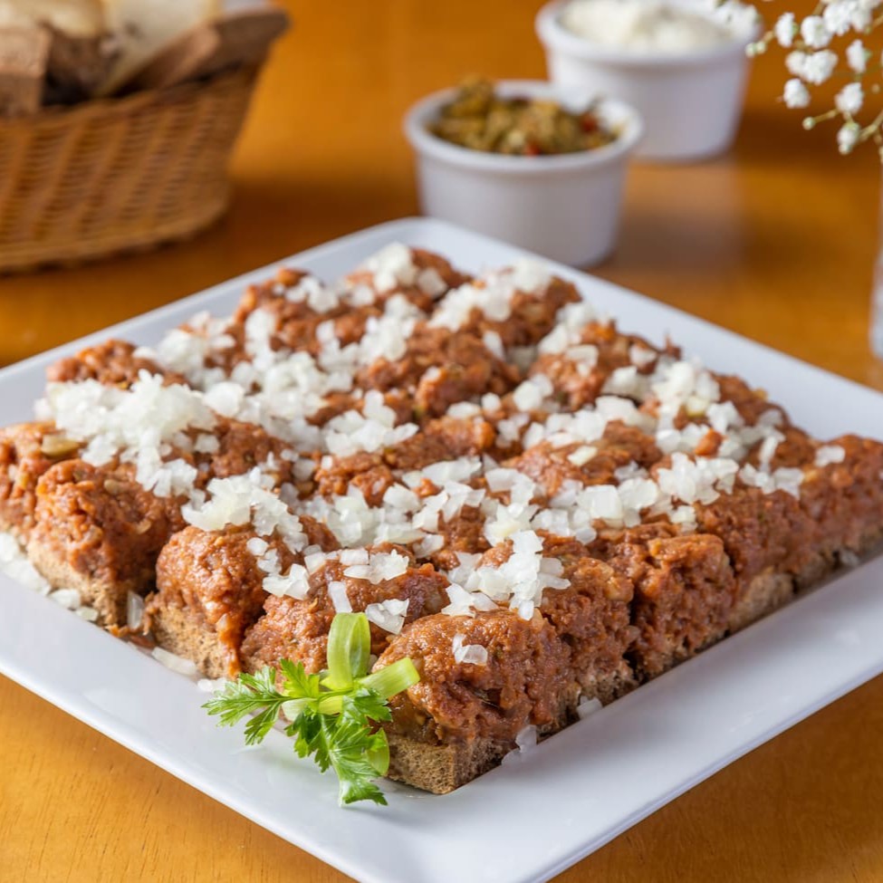 Canapés de filé mignon cru moído, cebola e temperos - 24 unidades
