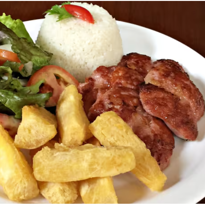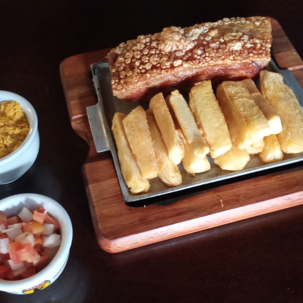 Costela Suína Desossada a Pururuca (700g) Acompanha Mandioca Frita (400g) + Farofa e Vinagrete (300g)