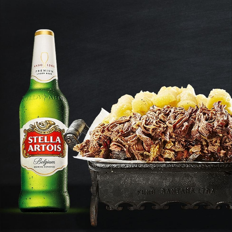 500 g Costela no bafo assada + Mandioca Cozida ou Frita (500g) e 02 (duas) Stella Artois 330 ml