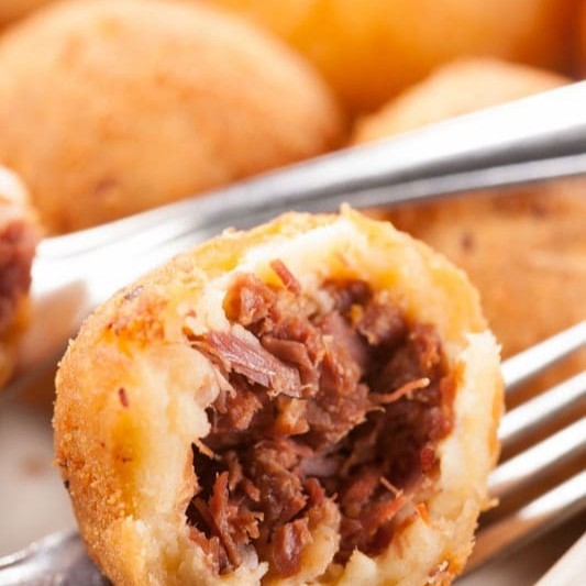 10 unidades de Bolinhos de massa de mandioca com Carne bovina