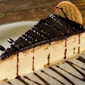 Base de biscoitos, recheado com creme holandês e cobertura de chocolate.