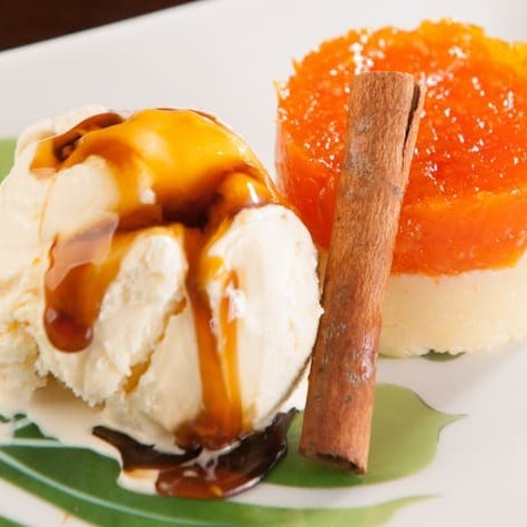 Doce de Abóbora com tradicional beijinho com cocô acompanhado de sorvete de creme