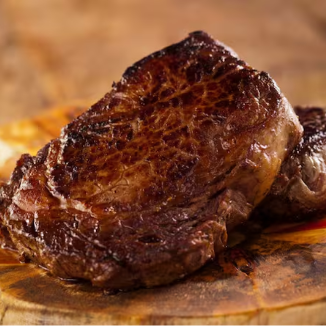 Bife Ancho Grelhado (150g), Batatas Fritas ( 100g), Arroz Branco (240g), Feijão Carioca(100g), Vinagrete (90g) e Farofa (70g)