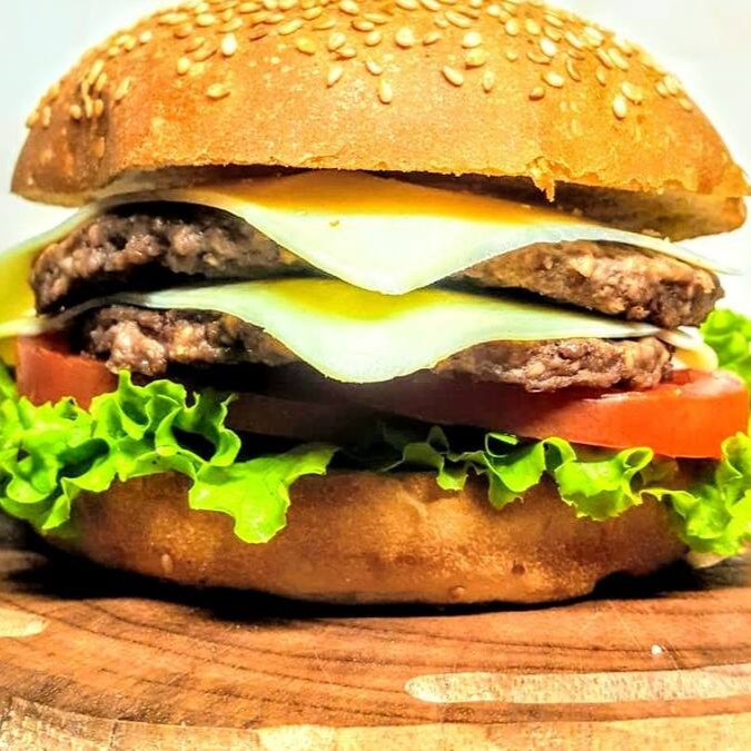 2 Hambúrgueres, pão com gergelim, queijo, salada e molho especial.