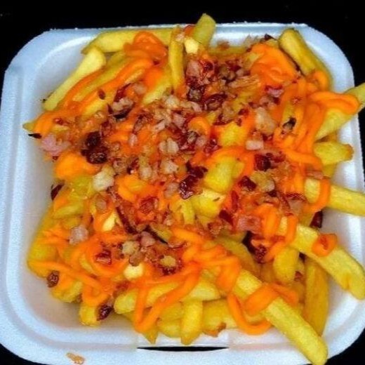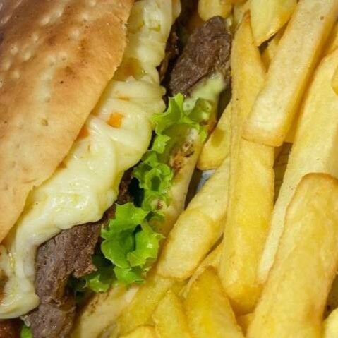 Beirute Contra-filé, Bacon, Ovos, Queijo, Cheddar, Catupiry, Salada E Molho Especial. Acompanha Porção Pequena De Batata Frita