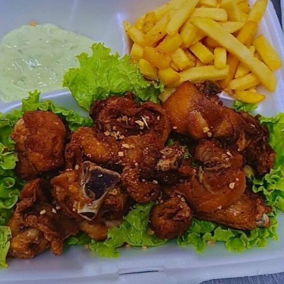 Frango à passarinho + Batata Frita + Maionese Verde.