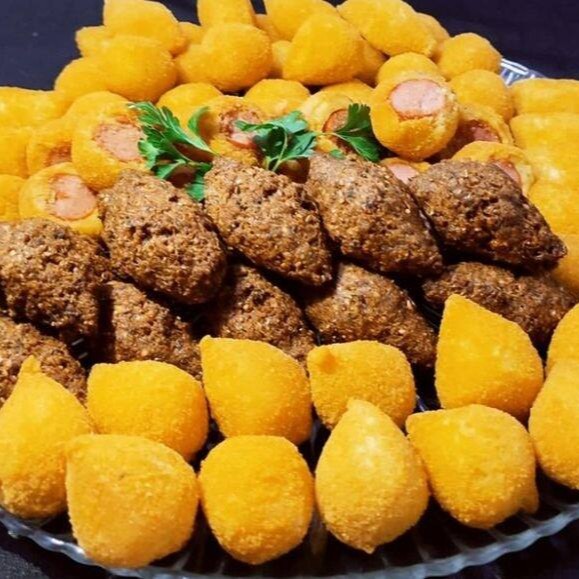 Acompanha: Bolinho de queijos, bolinho de calabresa,coxinha de frango, risole, kibe e enroladinho de salsicha