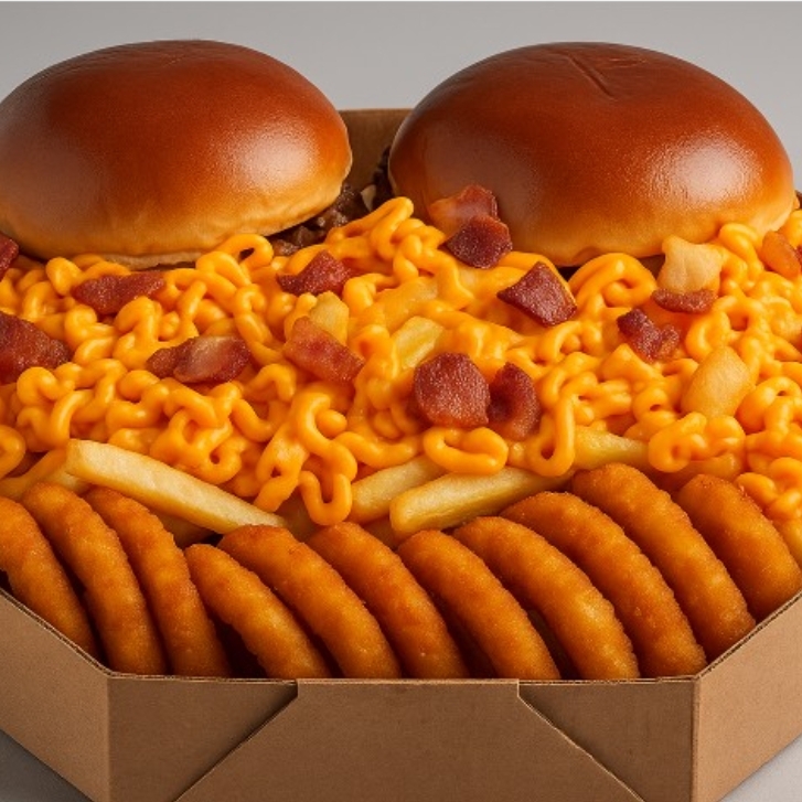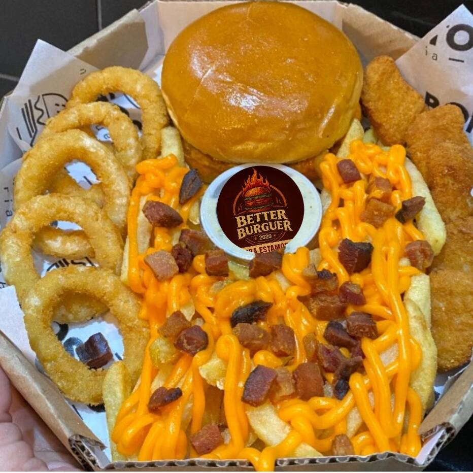 1 Better Melt, 5 cebola empanada, 5 nuggets + 200g de batata frita com cheddar e bacon .Tudo isso na caixa de pizza brotinho 25cm