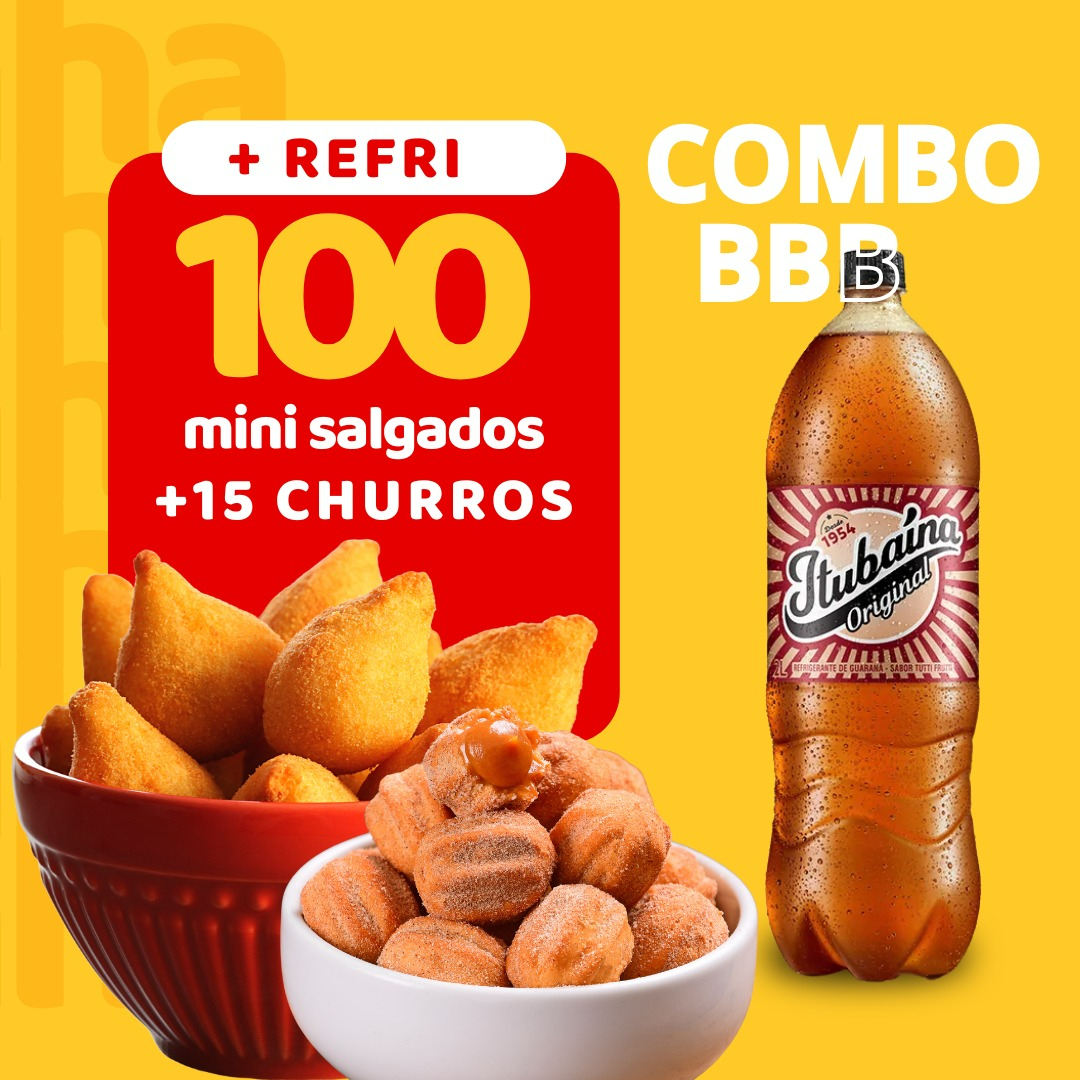 Combo Bbb - 100 Salgados 20g + 1 Tubaína 2l + 15 Churros 20g