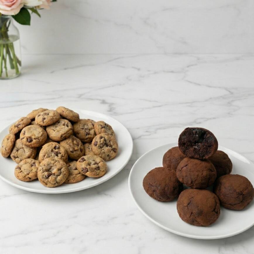 Os seus petiscos doce favoritos em um combo só! Porção de cookitos - 100g Porção de Bites de Brownie - 150g