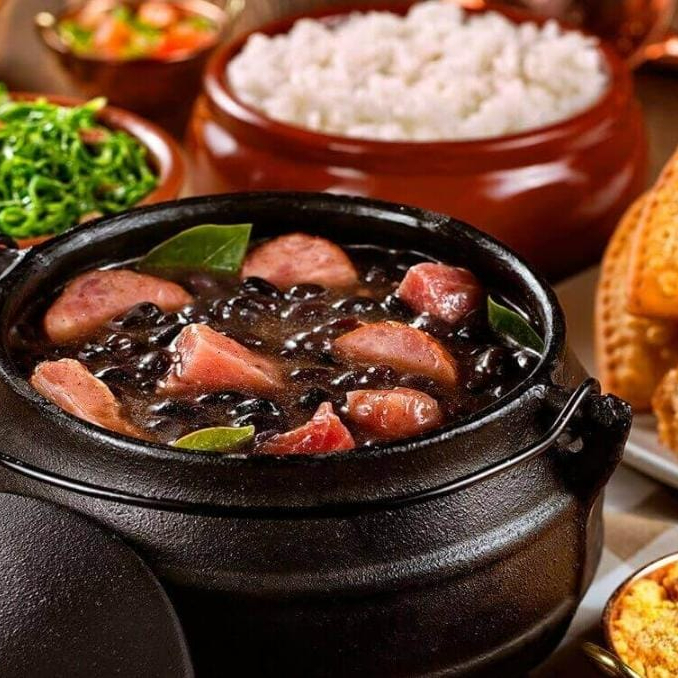 arroz , feijoada light, couve , bisteca , torressmo , farofa e banana amilanesa