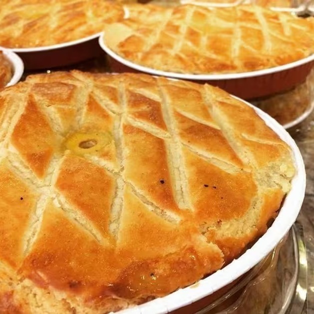 Torta massa amanteigada com recheio de palmito ou frango com requeijão 600gr