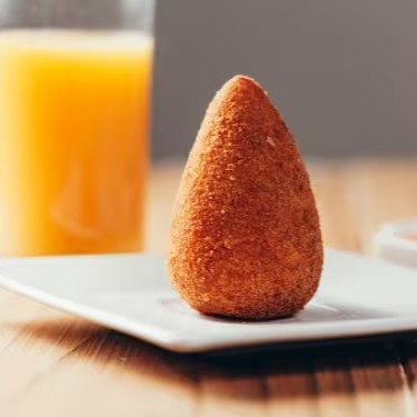 Kit com 01 unidade de coxinha de frango e 01 suco de laranja de 300ml.
